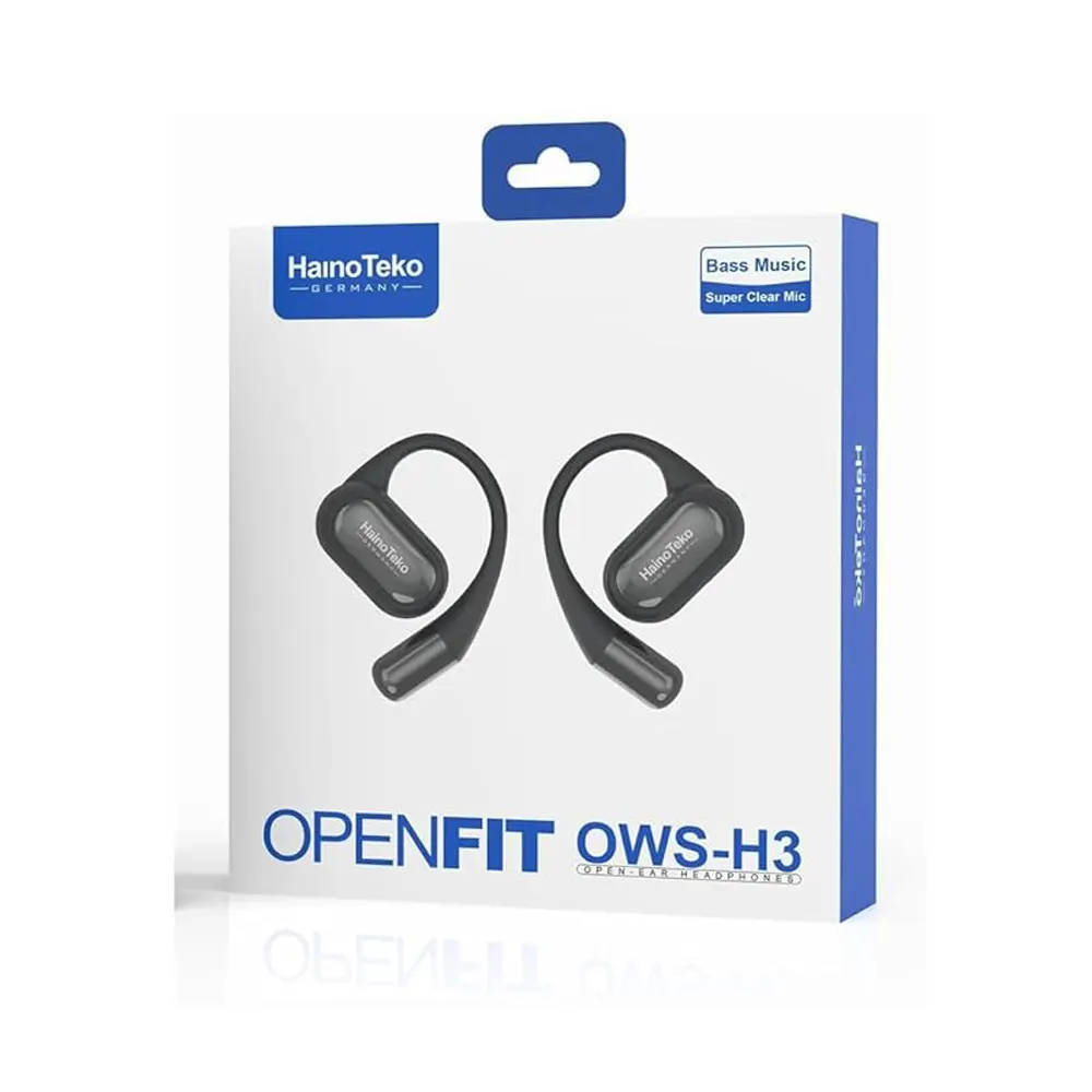 HainoTeko Germany OWS H3 True Wireless Open Ear Earphone With Super Clear Mic and High Bass Sound Quality (Black)